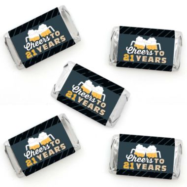Big Dot of Happiness Cheers and Beers to 21 Years - Mini Candy Bar Wrapper Stickers - 21st Birthday Party Small Favors - 40 Count