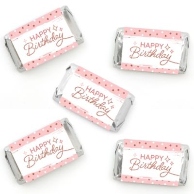 Big Dot of Happiness Pink Rose Gold Birthday - Mini Candy Bar Wrapper Stickers - Happy Birthday Party Small Favors - 40 Count